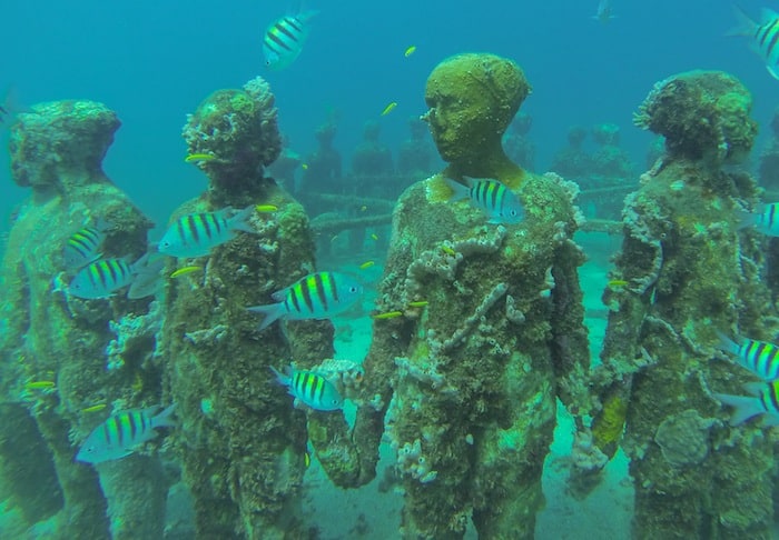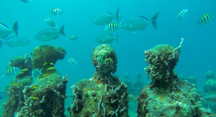 Every person visiting the area must pay the conservation fee of 1 USD. To see the sculptures you can choose between diving or snorkelling. Being the deepest sculpture at 25 feet / 10 meters, diving isn’t really necessary.