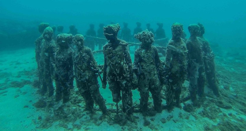 I had to go all the way to the island of Grenada, in the West Indies of the Caribbean. There, a new concept that combines art and coral’s protection has been developed. It’s what they call an underwater sculpture park and it has 68 different attractions dispersed along the shallow waters off Moliniere Point. It’s a great place to go snorkelling.