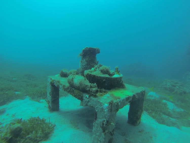 - If you are a good swimmer and have your own gear, you can swim to the next bay to the south. That’s where the sculptures are. Don’t go too deep. They are in the shallows.